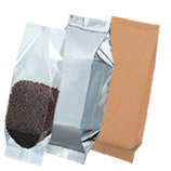 ガスバリア性がある、チャック付き袋、ガゼット袋、個包装袋、平袋、プリンタで印刷できる三方袋他、ドリップバッグ、メッシュフィルター、ワイヤー付き角底袋など。