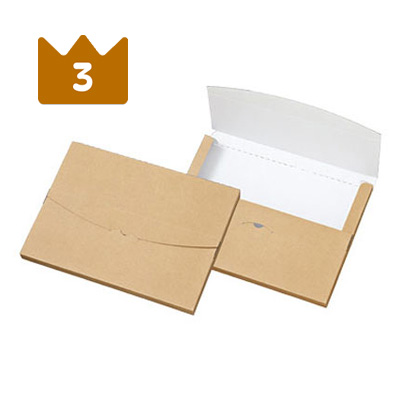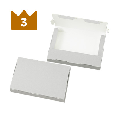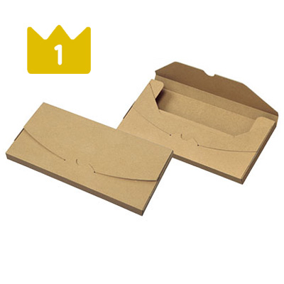 発送時に箱の隙間から商品を取られたりするトラブルを避けるには、しっかりとフタができるテープレスケースがオススメです。フタについたフラップを本体に差し込むと抜けにくい構造になっています。