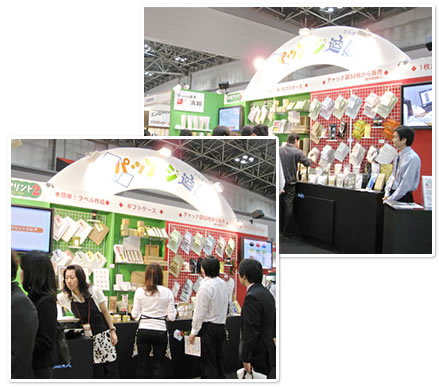 | 展示概要 | ・袋、箱など既製包装資材及びギフト資材のご紹介 ・後印刷加工・バルブ取付加工のご案内 ・ラベルシール印刷ソフト 「お手軽プリント2」のご紹介 |