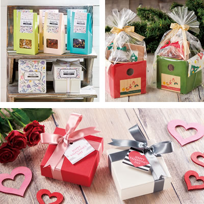 | 展示概要 | ・業態別パッケージ(紅茶・ハーブティ、健康茶・各国のお茶、珈琲) ・季節ギフト ・通販用資材 ・包装紙・手提げ袋 ・後印刷加工のご案内 ・「お手軽プリント2」の実演 |
