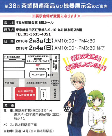 | 2018年2月3日(土)〜4日(日) | 第38回 茶業関連商品及び機器展示会展 | |