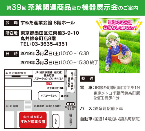 | 2019年3月2日(土)〜3日(日) | 第39回 茶業関連商品及び機器展示会展 | |