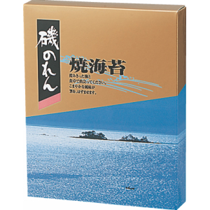 「磯のれん 焼海苔」の文字が入ったカートンです。他カートンと組み合わせができる専用の外箱もございます。