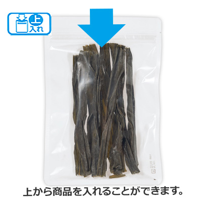 上部のチャック側から中身を入れるタイプの袋です。底面は熱圧着されているので上から入れてチャックで封ができます。表面は透明で裏面は白色のため、清潔感がある袋です。静電気防止機能を持った素材フィルムを使用しています。