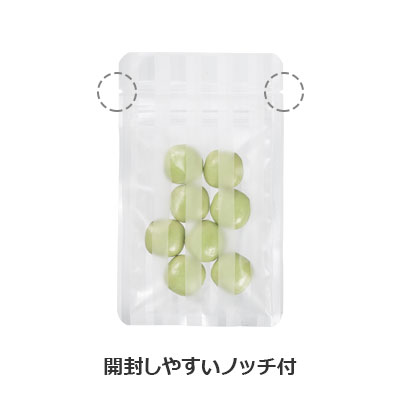 | 材質 | : | 透明蒸着PET12/PE15/ASLL50 合計:77ミクロン |