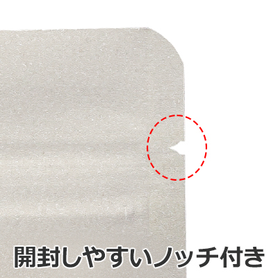 | 材質 | 本体: | 片艶晒クラフト紙50g/PE15/アルミ蒸着PET12/PE20/LL60 合計:クラフト紙50g+107ミクロン |