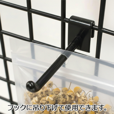 静防性、防湿性、ガスバリア性のある透明フィルムと耐久性のあるナイロンフィルムを使用した袋です。また気密性に優れ、中身が見え保存性が必要とされる場合に適していますが遮光性はありません。フック用の穴付き袋です。商品を吊り下げて使用できます。