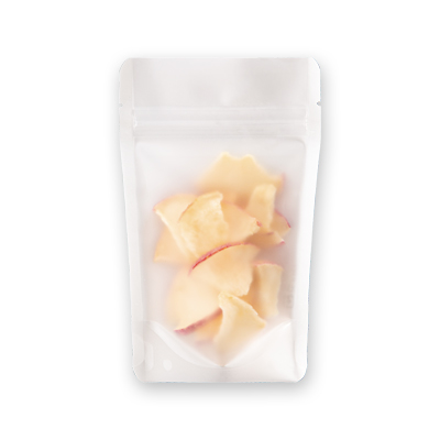 表面は半透明で裏面には上質紙を使用したチャック付スタンド袋です。マットタイプなため表からは中身が薄っすら透けて見えます。油脂が付着すると指紋が見えやすい材質ですのでご注意ください。
