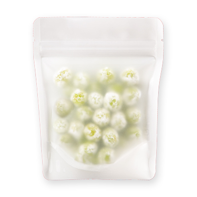 表面は半透明で裏面には上質紙を使用したチャック付スタンド袋です。マットタイプなため表からは中身が薄っすら透けて見えます。油脂が付着すると指紋が見えやすい材質ですのでご注意ください。