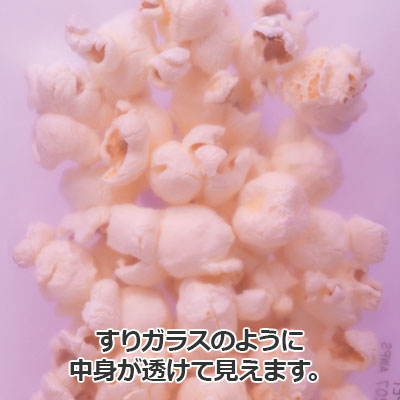 「すりガラス風」の半透明タイプのチャック付スタンド袋です。クリアなタイプと違い上品さや可愛さを出したい商品企画にいかがですか。中身を見せたい商品におすすめです。