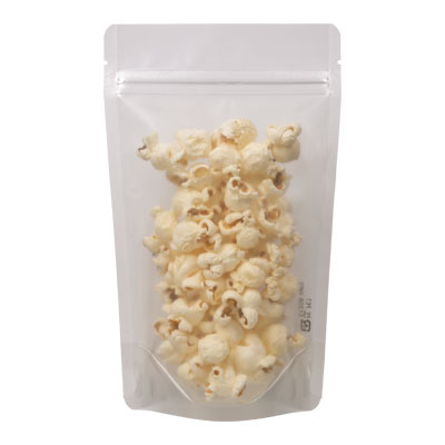 「すりガラス風」の半透明タイプのチャック付スタンド袋です。クリアなタイプと違い上品さや可愛さを出したい商品企画にいかがですか。中身を見せたい商品におすすめです。