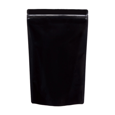 金属のアルミを中心に耐久性のあるナイロンフィルムを貼り合せた多層フィルムの袋です。ガスバリア性、防湿性、遮光性があります。袋は全面に黒を印刷しています。