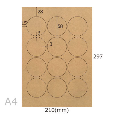 商品No.52194 クラフト無地シール(丸12面×20シート)A4
