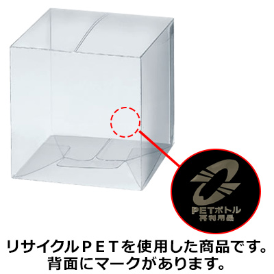 リサイクルPETを80%使用した循環型環境配慮商品です。立方体(正方形)の透明箱です。透明なので中身が見え、様々な用途にお使いいただけます。