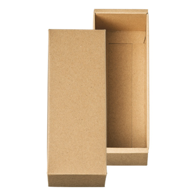FSC規格で認証された古紙(回収原材料)やその他の管理された原材料を使用した、フタ・底別で茶色のギフトケースです。シールや箔押加工でアレンジしやすい無地の箱です。古紙を使用しているため、色の濃淡が生じたり古紙由来の成分が粒状に見える場合があります。ご了承ください。事前に折り型をつけるときれいに組み立てられます。