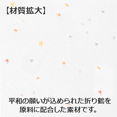 平和の願いが込められた 折り鶴を原料に配合した素材です。
