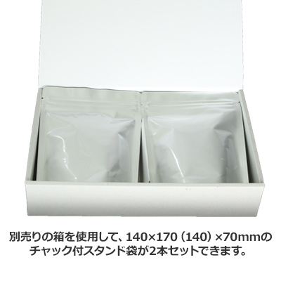 140×170(140)×70mm、140×175(145)×70mmサイズのチャック付スタンド袋を2本セットできる中仕切です。