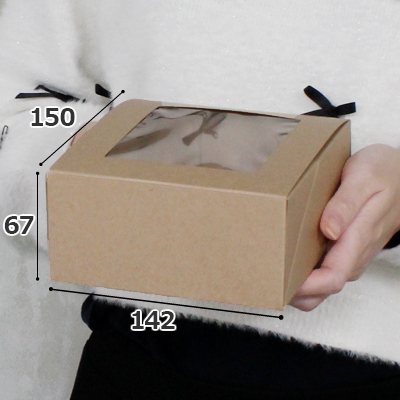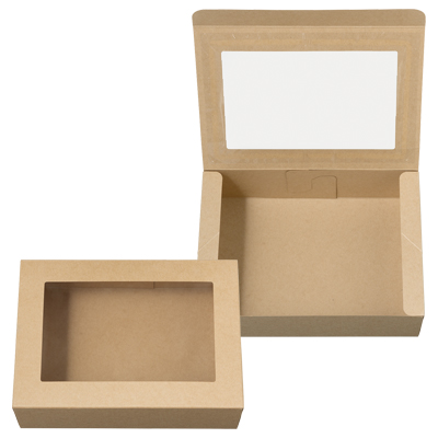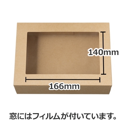 天面から中身が見えるケースです。窓部分はフィルムを貼っていますので中身が飛び出す心配はありません。材質はボール紙製に耐水加工を施しております。 中身との適性は無料サンプルにてお試しください。