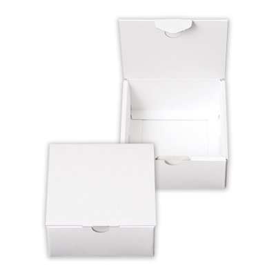 FSC規格で認証された古紙(回収原材料)やその他の管理された原材料を使用した、白色のギフトケースです。フタが2重構造で厚みがあり重厚感があります。