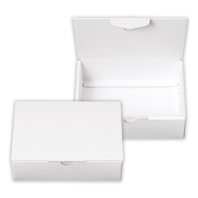 FSC規格で認証された古紙(回収原材料)やその他の管理された原材料を使用した、白色のギフトケースです。フタが2重構造で厚みがあり重厚感があります。