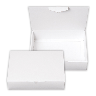 FSC規格で認証された古紙(回収原材料)やその他の管理された原材料を使用した、白色のギフトケースです。フタが2重構造で厚みがあり重厚感があります。