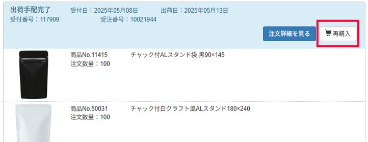 加工品も含めて「再購入」をご利用いただけます。後加工とは?