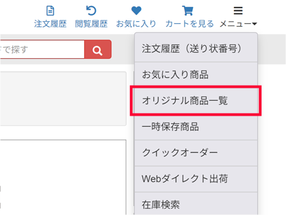 リピート注文(2回目以降)で加工品をご依頼の際は、「オリジナル商品一覧」からのご注文が便利です。