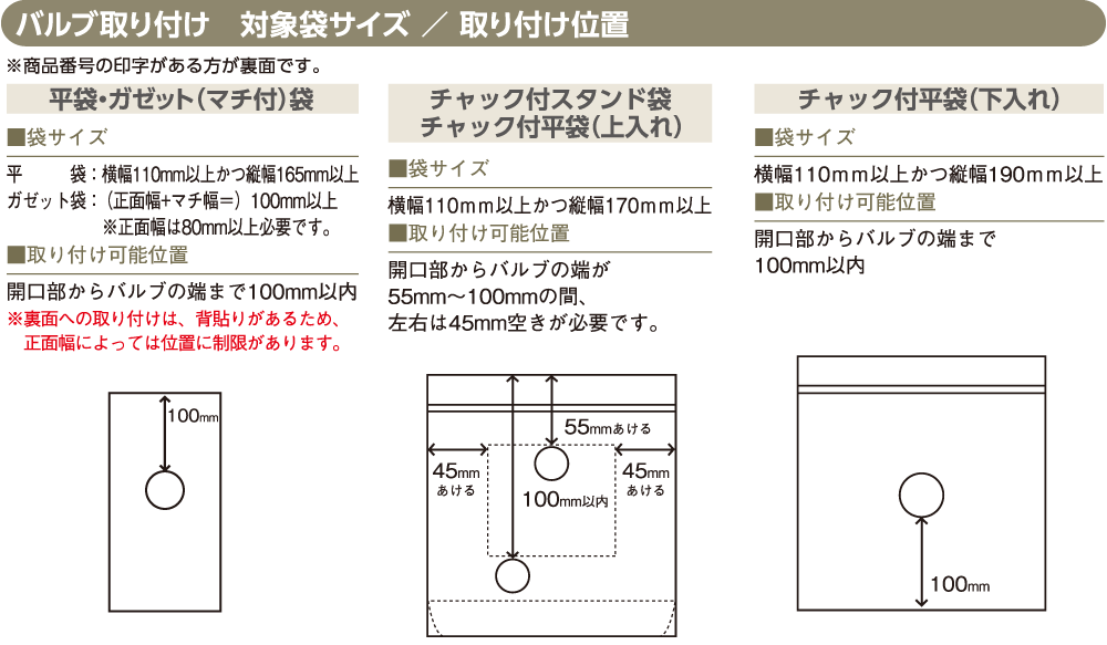 ガス抜きバルブ付 既製品袋一覧はこちら