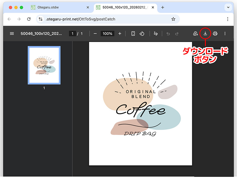 ※ブラウザの初期設定では保存先が「ダウンロード」ファイル、ファイル名が「Otegaru.otdw」で保存されます。