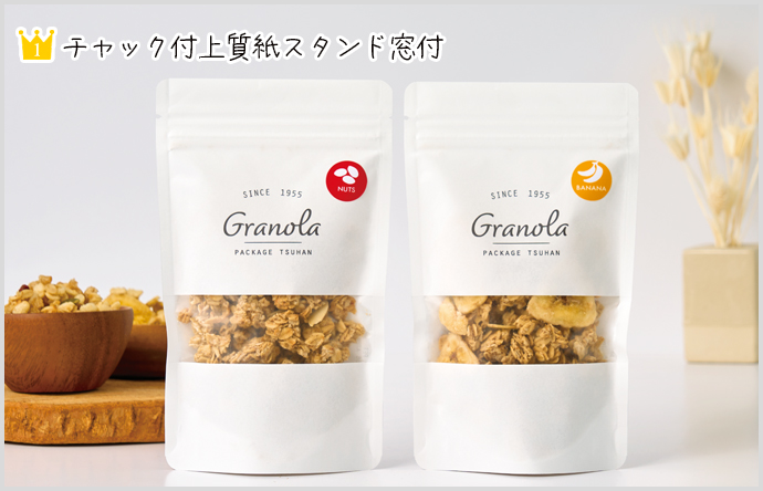 ガスバリア性のある中身が見える窓が付いた 上質紙タイプのスタンド袋が人気No.1!